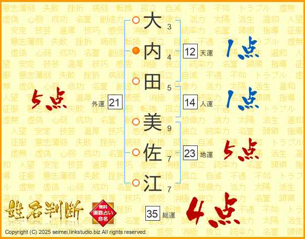 大内田美佐江さんの総運は35画の4点!