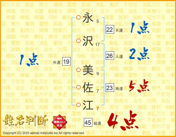 永沢美佐江さんの総運は45画の4点!