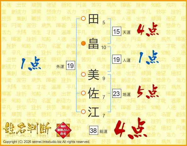 田(5画)畠(10画) 美(9画)佐(7画)江(7画)