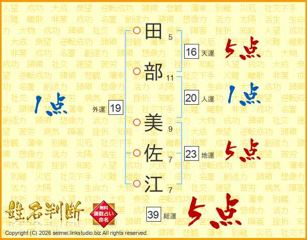 田部美佐江さんの総運は39画の5点!