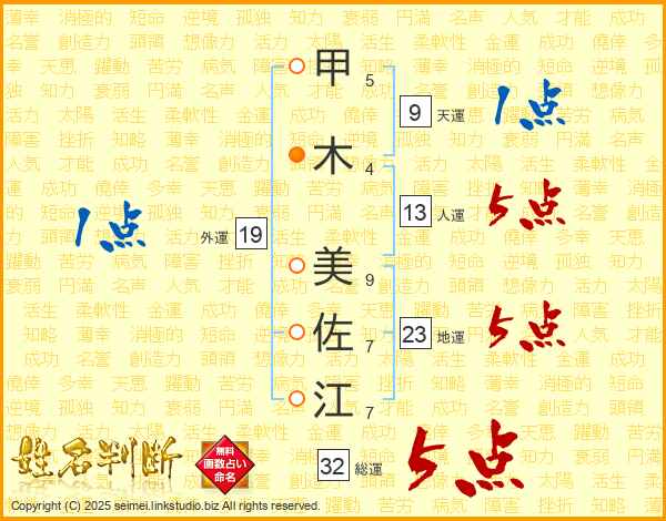 甲(5画)木(4画) 美(9画)佐(7画)江(7画)