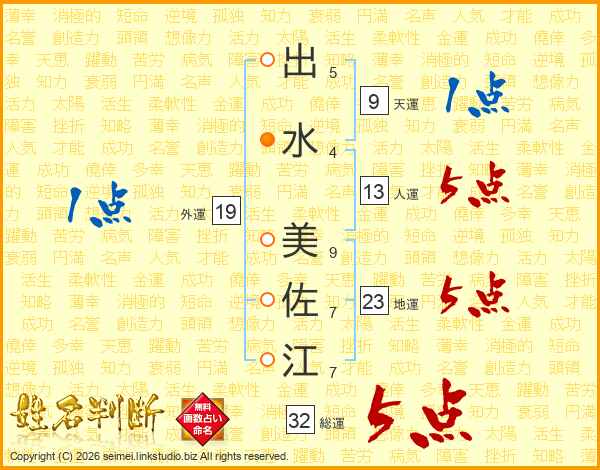 出水美佐江さんの総運は32画の5点!