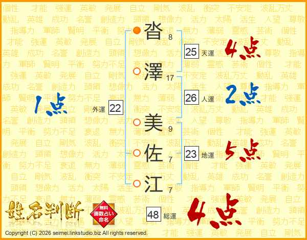 沓(8画)澤(17画) 美(9画)佐(7画)江(7画)