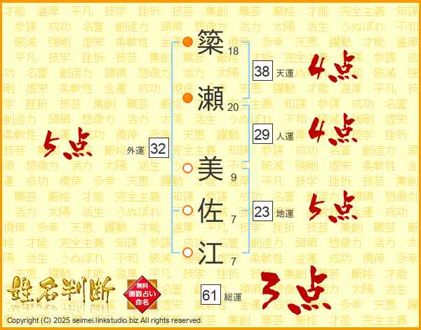 簗(18画)瀬(20画)  美(9画)佐(7画)江(7画)