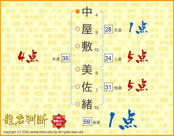 中屋敷美佐緒さんの外運は35画の4点!