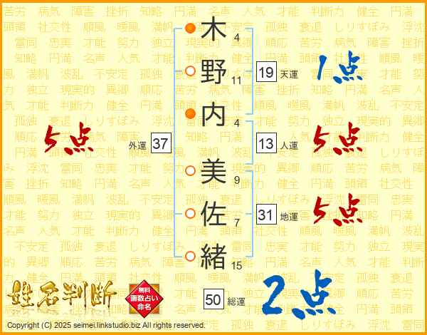 木野内美佐緒さんの外運は37画の5点!