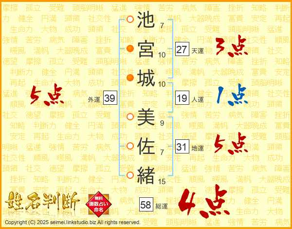 池宮城美佐緒さんの総運は58画の4点!