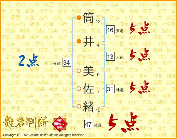 筒井美佐緒さんの総運は47画の5点!
