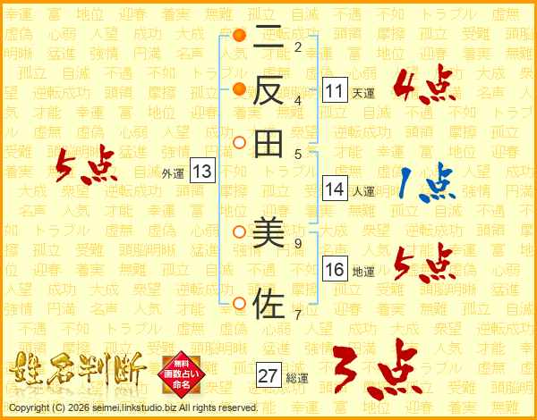 二反田美佐さんの天運は11画の4点!