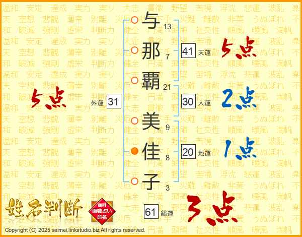 与那覇美佳子さんの天運は41画の5点!