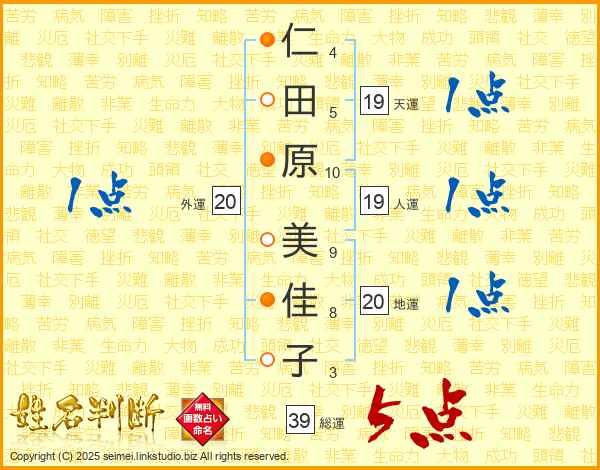 仁(4画)田(5画)原(10画) 美(9画)佳(8画)子(3画)