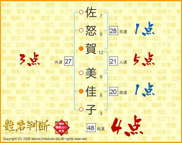 佐怒賀美佳子さんの総運は48画の4点!