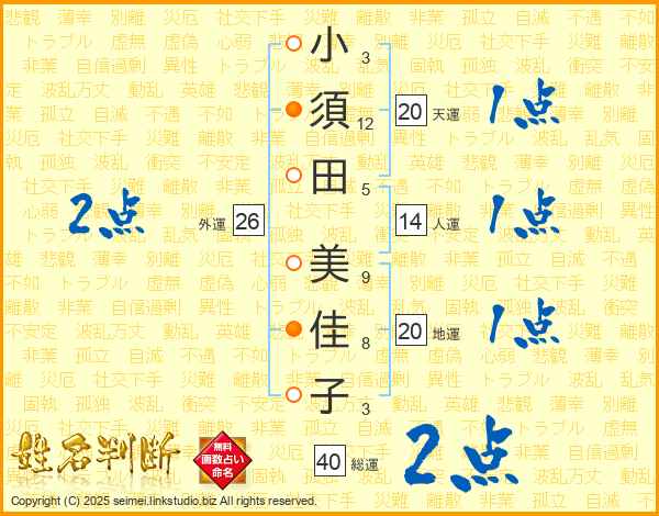 小須田美佳子さんの総運は40画の2点!