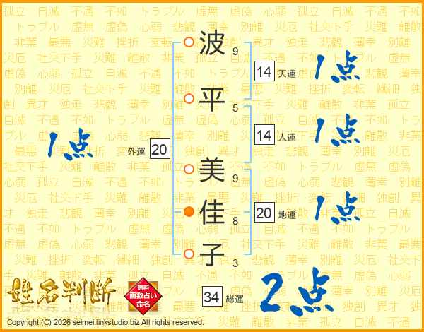 波(9画)平(5画) 美(9画)佳(8画)子(3画)
