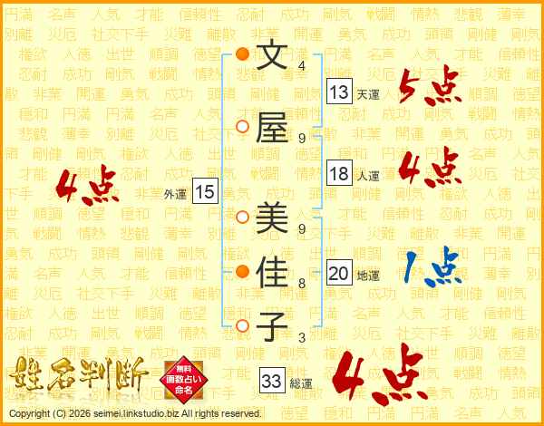 文屋美佳子さんの総運は33画の4点!