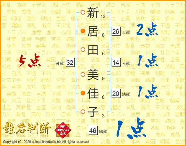 新居田美佳子さんの天運は26画の2点!
