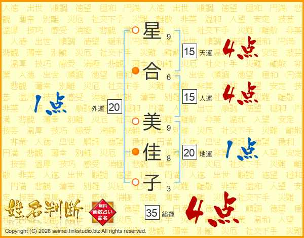 星合美佳子さんの総運は35画の4点!