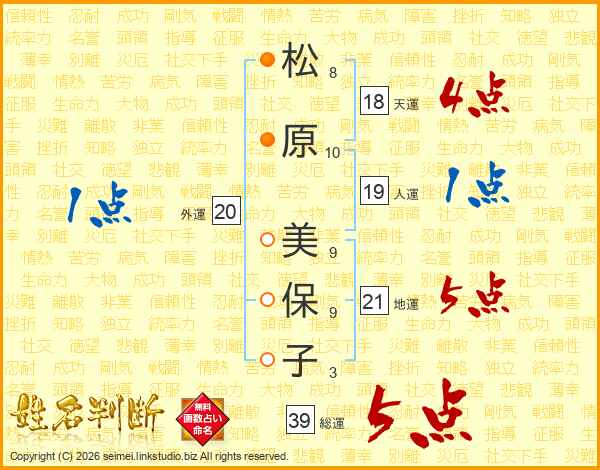 松原美保子さんの総運は39画の5点!