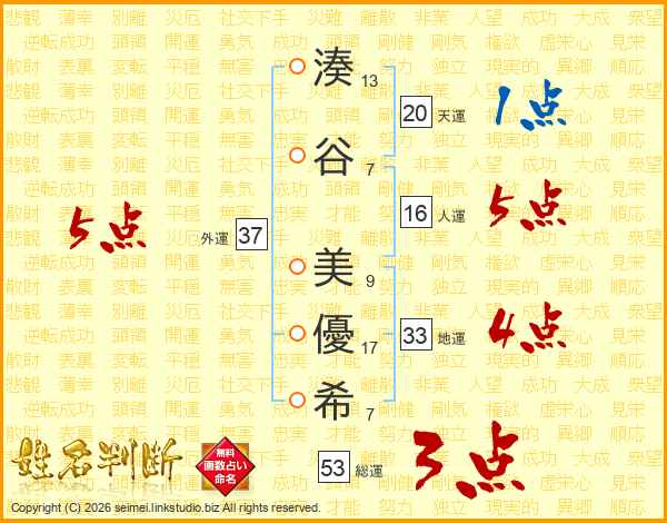 湊谷美優希さんの外運は37画の5点!