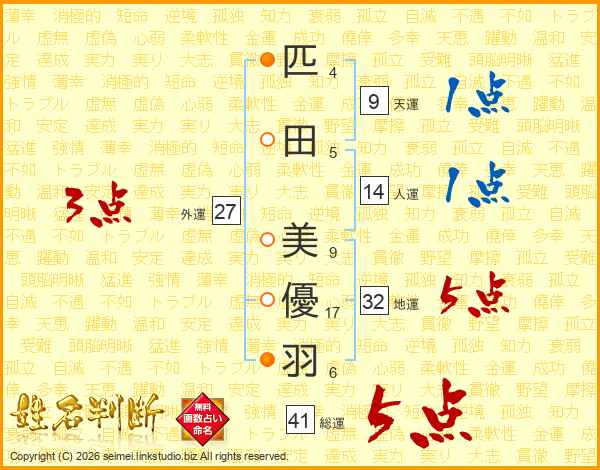 匹田美優羽さんの総運は41画の5点!