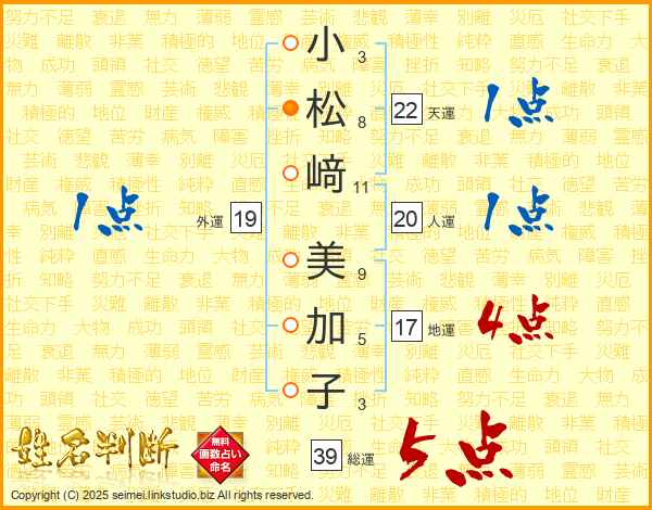 小松﨑美加子さんの総運は39画の5点