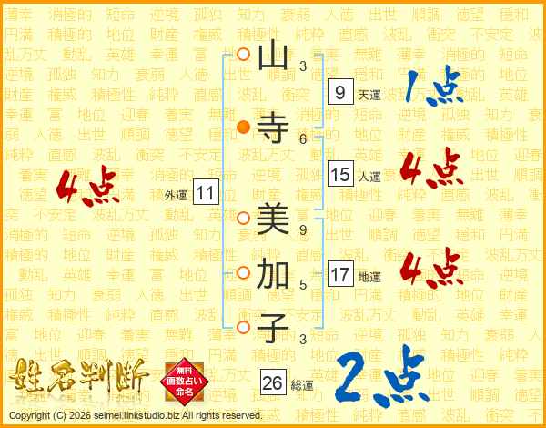 山寺美加子さんの総運は26画の2点!