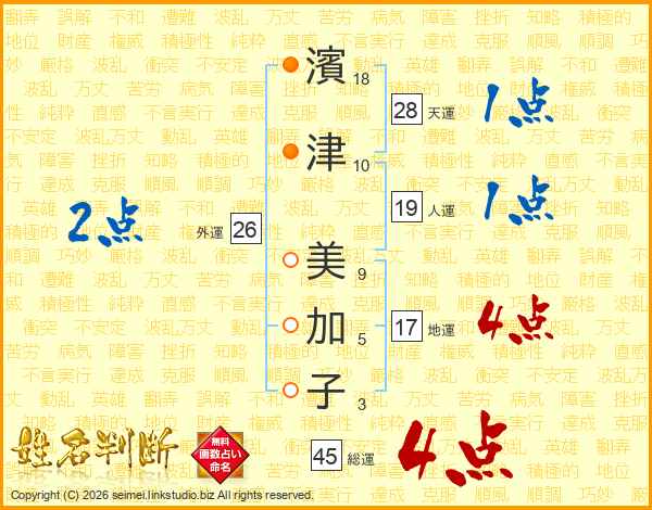 濱津美加子さんの総運は45画の4点!