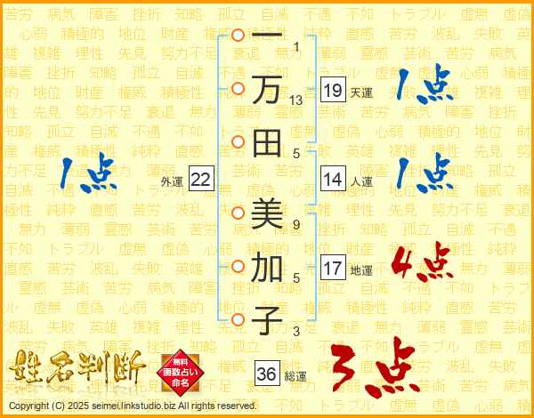 一万田美加子さんの天運は19画の1点!