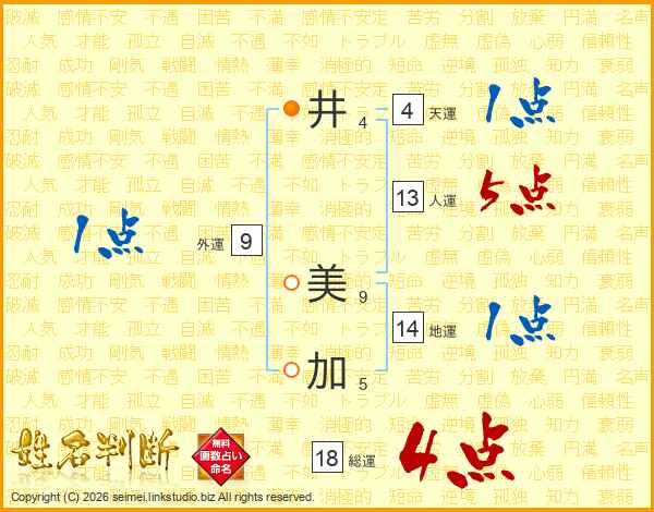 井(4画) 美(9画)加(5画)