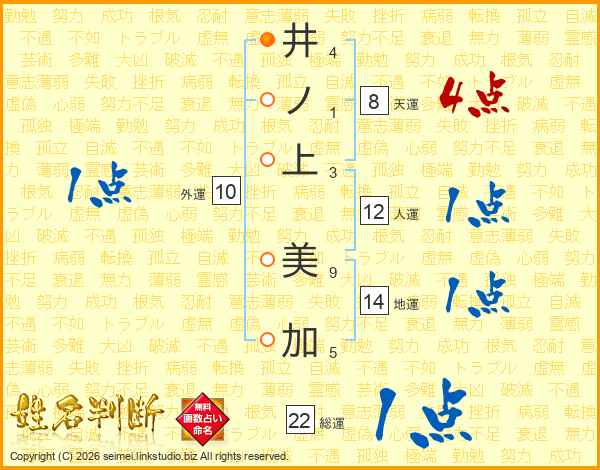 井ノ上美加さんの総運は22画の1点!
