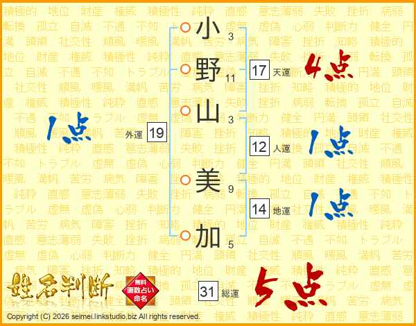 小野山美加さんの総運は31画の5点!