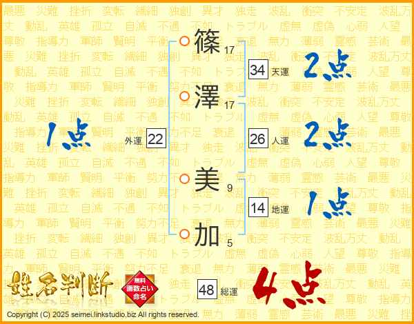 篠(17画)澤(17画) 美(9画)加(5画)