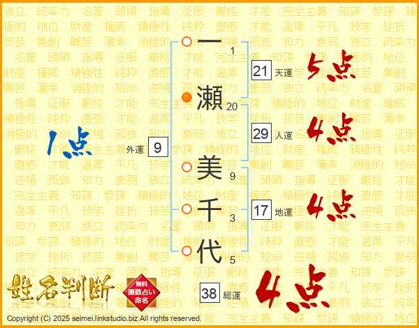 一瀬美千代さんの総運は38画の4点!