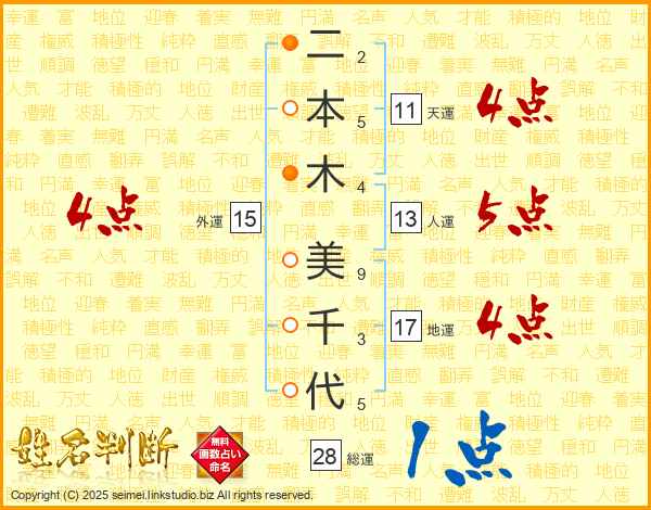 二本木美千代さんの外運は15画の4点!