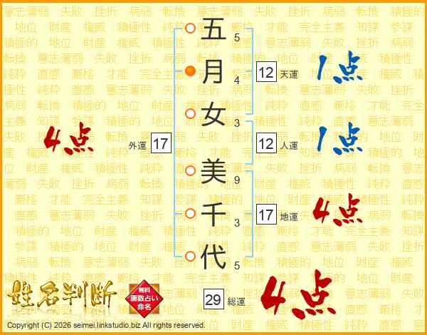 五月女美千代さんの総運は29画の4点!