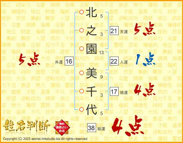 北之園美千代さんの外運は16画の5点!