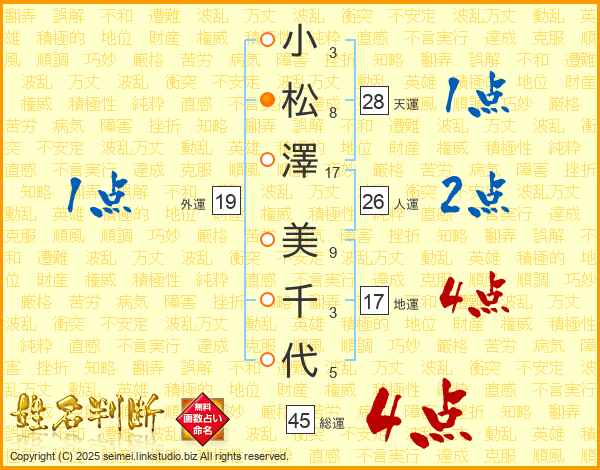 小松澤美千代さんの総運は45画の4点!