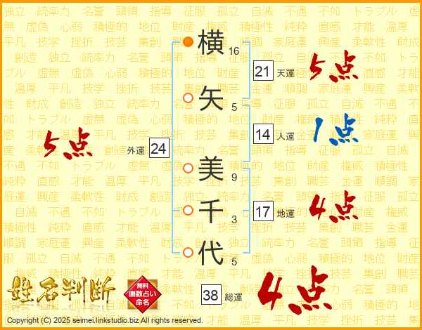 横矢美千代さんの総運は38画の4点!