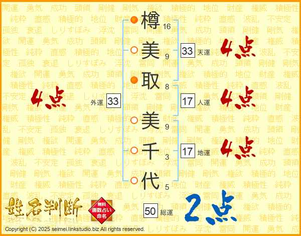 樽美取美千代さんの外運は33画の4点!