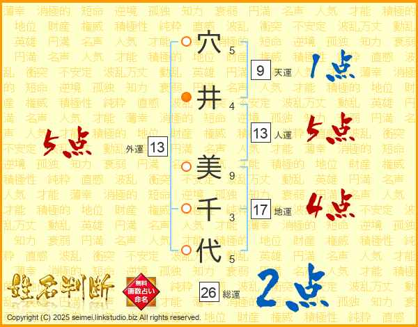 穴(5画)井(4画) 美(9画)千(3画)代(5画)