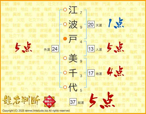 江波戸美千代さんの総運は37画の5点