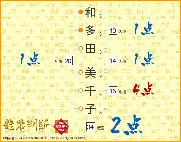 和(8画)多(6画)田(5画) 美(9画)千(3画)子(3画)