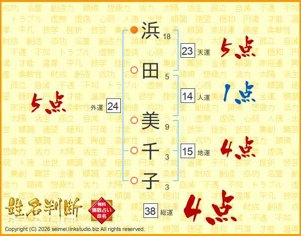 浜(18画)田(5画) 美(9画)千(3画)子(3画)