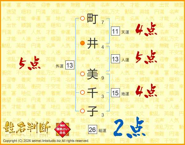 町(7画)井(4画) 美(9画)千(3画)子(3画)