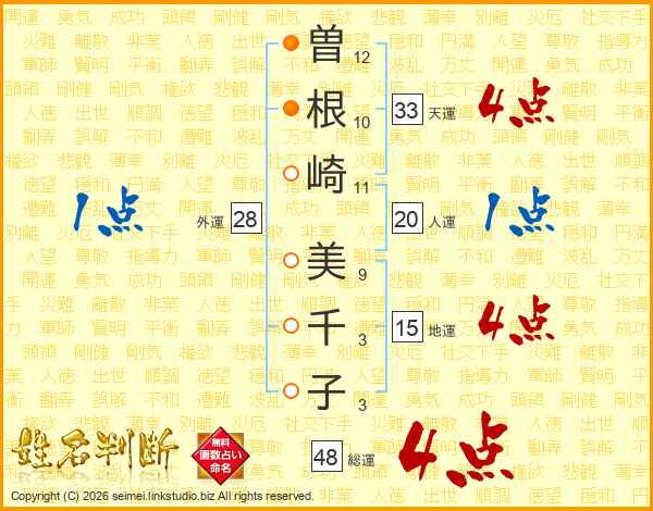 曽根崎美千子さんの総運は48画の4点!