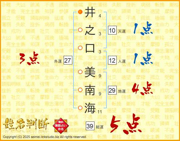 井之口美南海さんの総運は39画の5点!