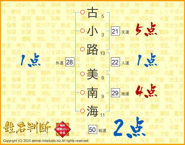 古(5画)小(3画)路(13画) 美(9画)南(9画)海(11画)