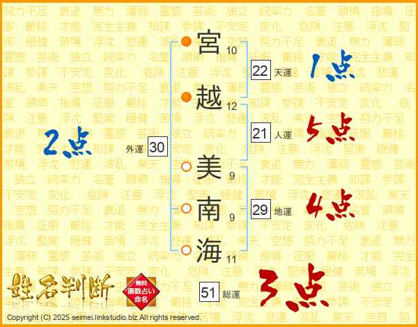 宮越美南海さんの人運は21画の5点!