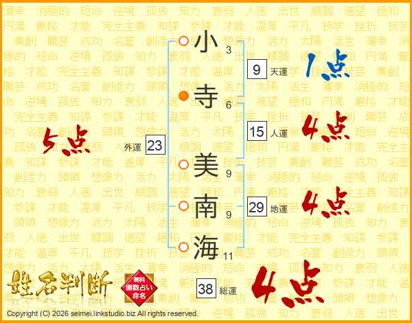 小寺美南海さんの総運は38画の4点!