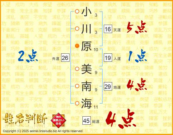 小川原美南海さんの天運は16画の5点!